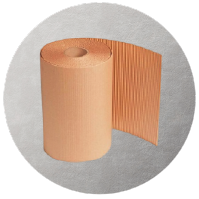 Corrugated roll is the direct output of a 2-ply corrugator machine and consists of two paper layers pasted together. It can be cut as required to make 2-ply sheets and is produced using kraft or duplex paper in various widths.